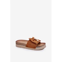 Dámské Sandály Na Platformě S Mašlí A Dekorativní Broží Hnědé Lenela