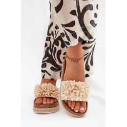 Dámské pantofle ideální na horké dny, usazené na korkové platformě s pletením, kombinují pohodlí s letním stylem. Na pásku vpředu se nacházejí ozdobné, četné květiny z materiálu, které dodávají šarm. Vložka jemně profilovaná z eko kůže zajišťuje pohodlí po celý den. Skvělé pro letní stylizace, skvěle se hodí k šatům, sukním nebo šortkám, vnášejí lehkost a svěžest do každého vzhledu. Při výběru velikosti se řiďte tabulkou velikostí.