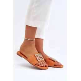 Dámské sandály na ploché podrážce s oranžovým zdobením Inaile