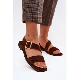 Dámské sandály na ploché podrážce se zlatým přezkou čokoládové Verissea