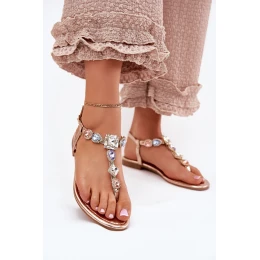 Dámské sandály na plochém podpatku s krystaly růžové zlato Fiolalia