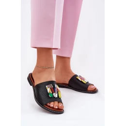 Dámské sandály na plochém podpatku s ozdobou černé Clelione