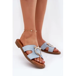 Dámské pantofle z eko semiše jsou skvělou volbou na teplé dny. Jsou umístěny na plochém podpatku, což zajišťuje pohodlí a stabilitu po celý den. Vpředu mají ozdobu, která dodává eleganci a jedinečný charakter. Měkká stélka zajišťuje pohodlí při nošení, což dělá tyto pantofle ideální volbou pro letní stylizace, jak pro každodenní, tak pro elegantnější. Při výběru velikosti se řiďte tabulkou velikostí.