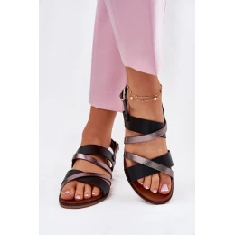 Dámské Sandály Na Plochém Podpatku S Pásky Černé Sergio Leone SK086H