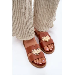 Dámské pantofle vyrobené z eko kůže jsou skvělou volbou na teplé dny. Uloženy na plochém podpatku poskytují pohodlí a lehkost po celý den. Vpředu se nachází roztomilá ozdoba ve tvaru srdce, která jim dodává jemné kouzlo. Měkká stélka zaručuje pohodlí, takže tyto pantofle budou skvělou volbou pro letní stylizace, spojující eleganci s funkčností. Ideální na každodenní výlety v slunečných dnech! Při výběru velikosti se řiďte tabulkou velikostí.