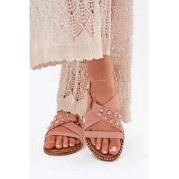 Dámské Sandály Na Plochém Podpatku Se Zlatými Hroty Růžové Zanira
