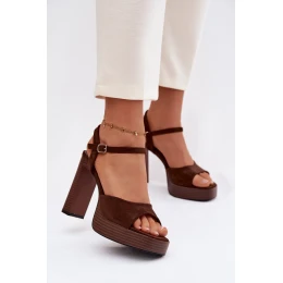 Dámské sandály na podpatku a platformě z eko semiše čokoládové Gralisse