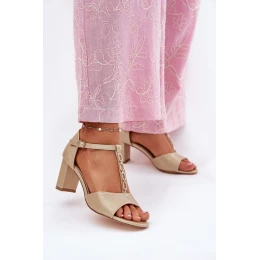 Dámské Sandály Na Podpatku S Dekorativním Páskem Eko Kůže Zlaté Triavera