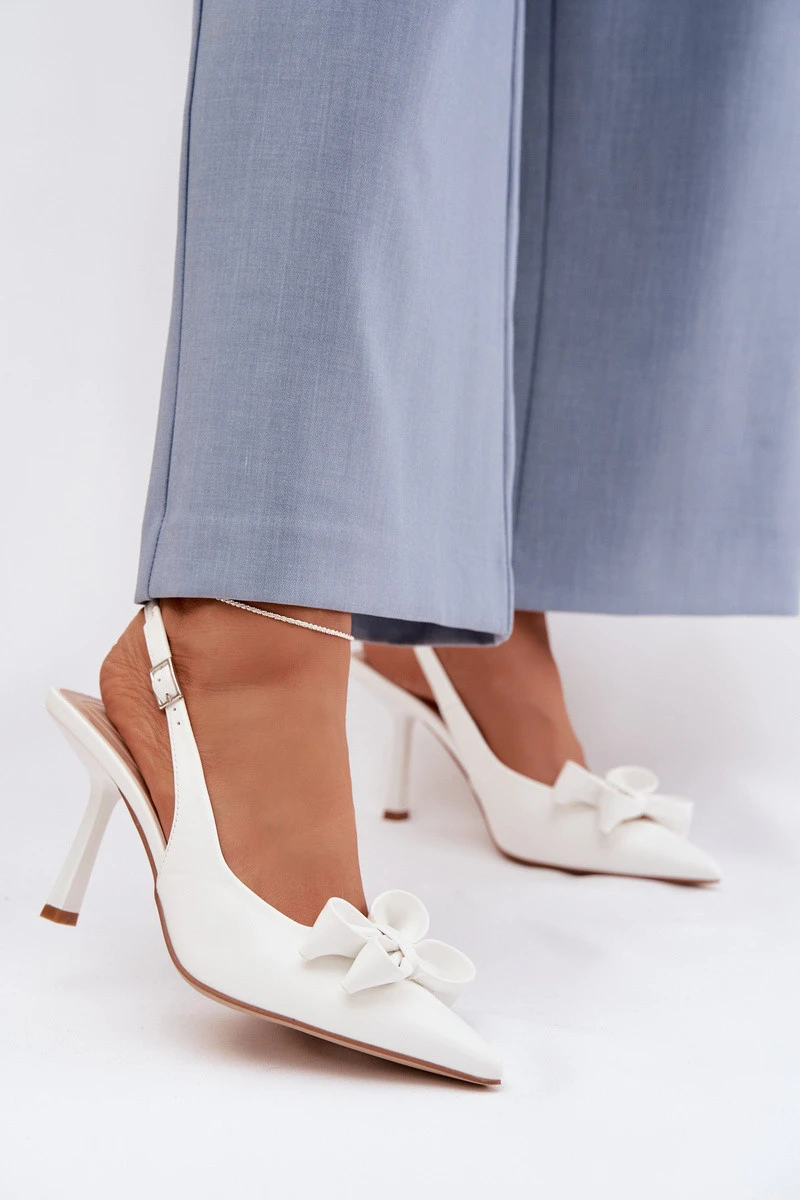 Dámské sandály na podpatku s mašlí bílé Jonera
