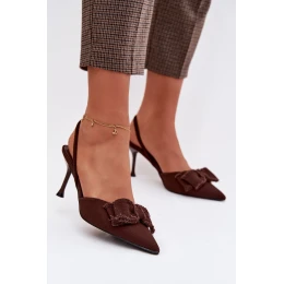 Dámské sandály na podpatku s mašlí Čokoládové Hestia