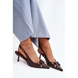 Dámské sandály vyrobené z eko kůže jsou stylovou volbou na výjimečné příležitosti. Uzavřené, špičaté nosy jim dodávají klasický a ženský charakter, ozdobný detail vpředu přitahuje pozornost a zdůrazňuje eleganci modelu. Tenká jehla krásně zeštíhluje siluetu a dodává celkovému vzhledu šmrnc. Model na přezku s nastavitelým páskem umožňuje dokonalé přizpůsobení noze, zajišťuje pohodlí a stabilitu při nošení. Sandály jsou ideální jako doplněk k mnoha stylizacím, elegantním šatům a outfitům na zvláštní příležitosti. Při výběru velikosti se řiďte tabulkou velikostí.
