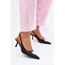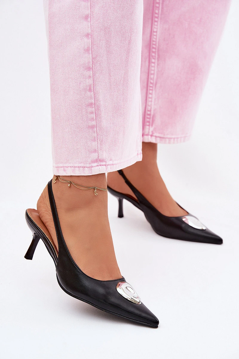 Elegantní dámské sandály vyrobené z napodobeniny kůže jsou výjimečnou volbou pro ženy, které ocení styl a ženský vzhled. Skvěle se hodí na speciální příležitosti, večerní vycházky a letní oslavy. Model má špičaté nosy, které opticky zeštíhlují nohu. Jemná vysoká podrážka podtrhuje siluetu, dodává jí lehkost a ženský půvab. Jemný zlatý detail na pásku je módní akcent, který přitahuje pozornost a dodává celkovému vzhledu elegantní dojem. Ideální spojení elegance, ženskosti a moderního stylu. Při výběru velikosti se řiďte tabulkou velikostí.