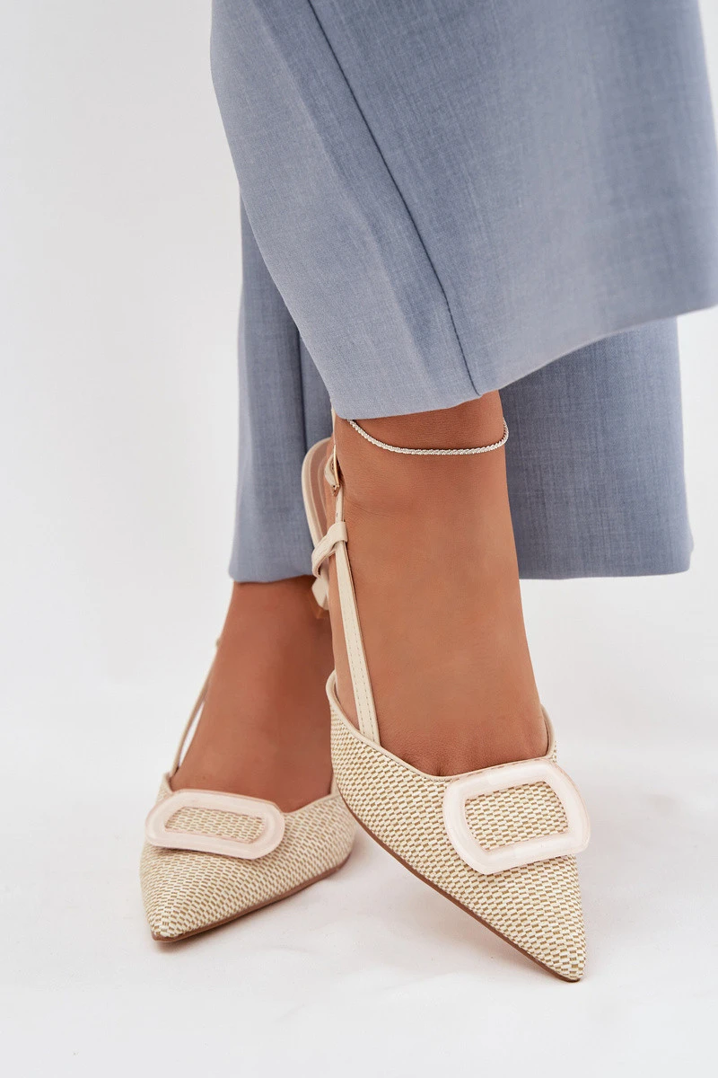 Dámské sandály vyrobené z kombinace eko kůže a syntetického materiálu jsou stylovým doplňkem pro ženské outfity. Špičaté nosy zdůrazňují štíhlou linii nohy a dodávají modelu elegantní charakter. Obuv je osazena na tenkém podpatku, který jemně prodlužuje siluetu a dodává chůzi lehkost. Zapínání na přezku s nastavitelým páskem umožňuje přizpůsobení na noze, zajišťuje pohodlí a stabilitu. Dekorativní prvek vpředu přitahuje pozornost a tvoří efektní detail, díky čemuž jsou sandály ideální na elegantní výlety a zvláštní příležitosti. Při výběru velikosti se řiďte tabulkou velikostí.