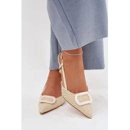 Dámské sandály na podpatku s ozdobným prvkem Béžové Eslina