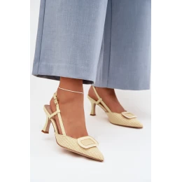 Dámské sandály vyrobené z kombinace eko kůže a syntetického materiálu jsou stylovým doplňkem pro ženské outfity. Špičaté nosy zdůrazňují štíhlou linii nohy a dodávají modelu elegantní charakter. Obuv je osazena na tenkém podpatku, který jemně prodlužuje siluetu a dodává chůzi lehkost. Zapínání na přezku s nastavitelým páskem umožňuje přizpůsobení na noze, zajišťuje pohodlí a stabilitu. Dekorativní prvek vpředu přitahuje pozornost a tvoří efektní detail, díky čemuž jsou sandály ideální na elegantní výlety a zvláštní příležitosti. Při výběru velikosti se řiďte tabulkou velikostí.
