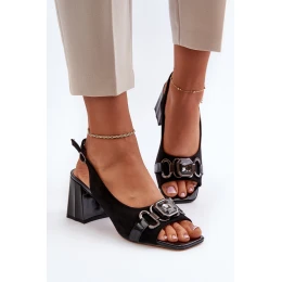 Dámské sandály na podpatku s ozdobou černé D&A MR38-659