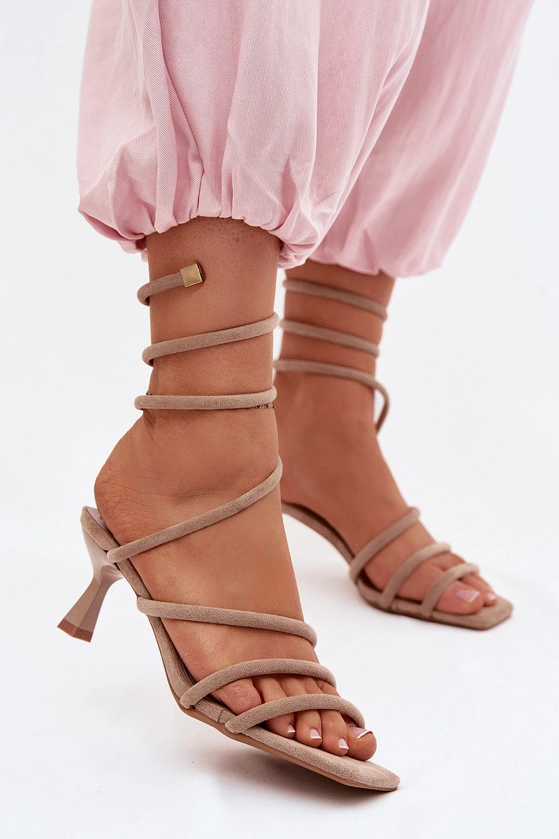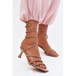 Dámské sandály na podpatku s pásky Béžové Samara