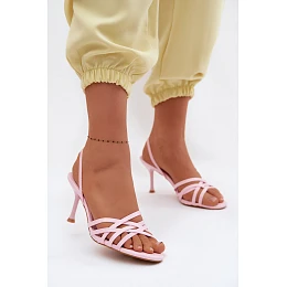 Dámské sandály na podpatku s pásky růžové Velivelle