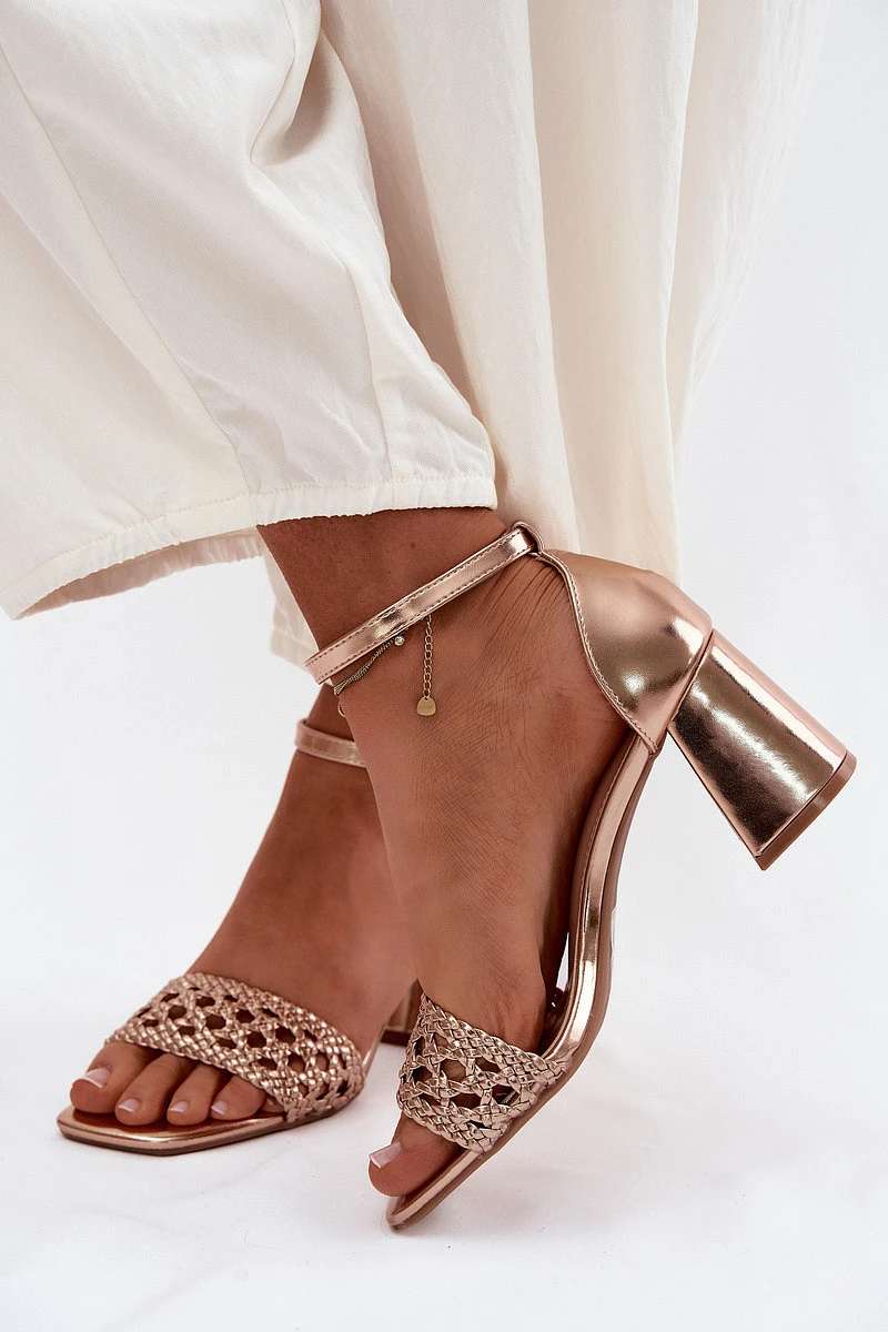Dámské sandály na podpatku s pleteným vzorem šampaňské Felena