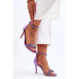 Dámské sandály na vysokém podpatku s kamínky fialové Perfecto