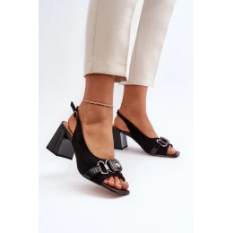 Dámské sandály na vysokém podpatku s ozdobou, černé D&A