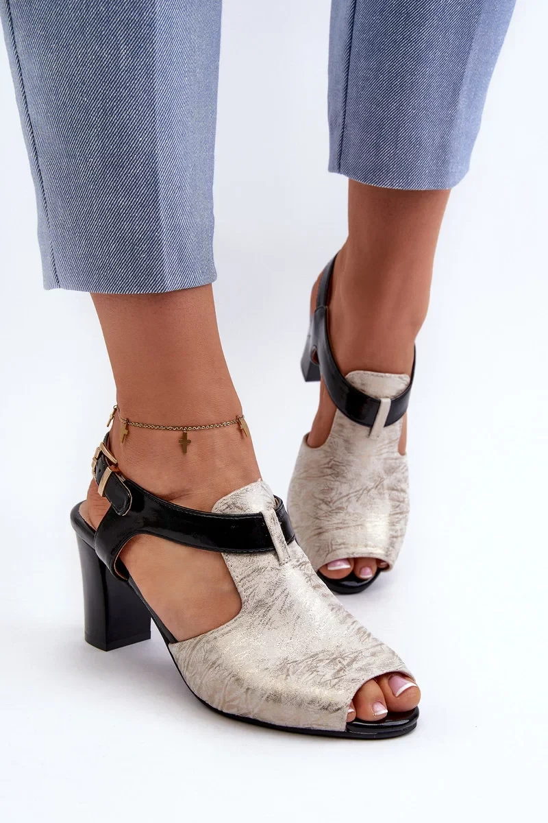 Dámské sandály na vysokém podpatku vyrobené z eko kůže, zlaté a černé Queenmarie