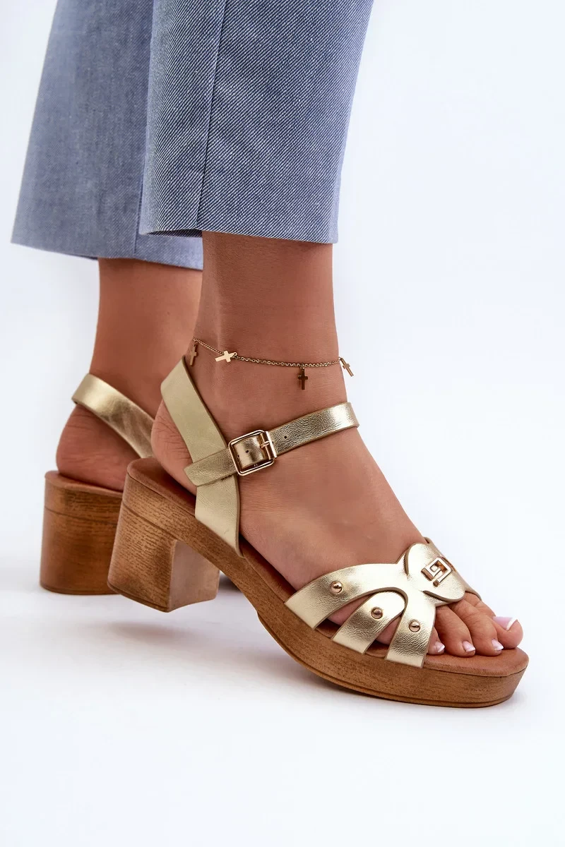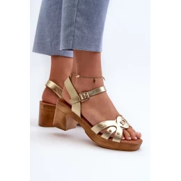 Dámské sandály na vysokém podpatku vyrobené z eko kůže, zlatý Assames