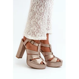 Dámské sandály na vysokém podpatku z kůže Maciejka 06050-25 Zlaté