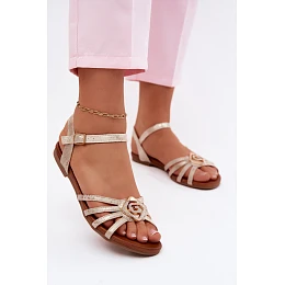 Dámské sandály Ploché S Pasky A Ozdobou S.Barski KV61-6056 Zlaté