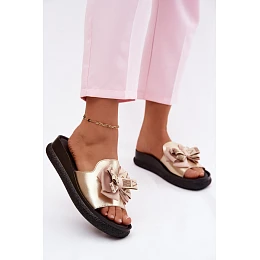 Dámské Sandály Pravá Kůže Mašle S.Barski KV61-6061 Zlaté