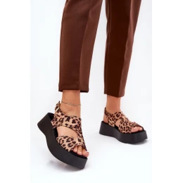 Dámské sandály s leopardím vzorem na platformě z eko semiše hnědé Karonia