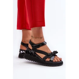 Velmi stylové dámské sandály s platformou na klínku. Praktické zapínání na suchý zip zaručuje rychlé a pohodlné přizpůsobení noze. Mašlička vpředu jim dodává půvab a jemnost. Tento model určitě přitáhne pohledy! Při výběru velikosti se řiďte tabulkou velikostí.