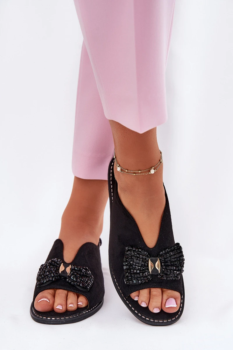 Dámské Sandály S Mašlí Na Plochém Podpatku S.Barski KV51-014 Černé