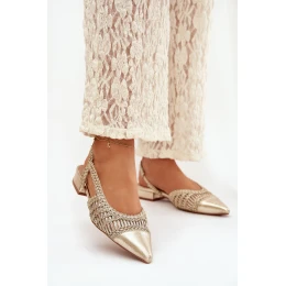 Dámské sandály s pleteným na klocku zlaté Nivorra