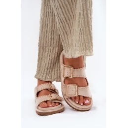 Dámské Sandály S Přezkami A Dekorativním Obšitím Béžové Visley