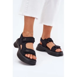 Dámské sandály vyrobené z textilního materiálu, umístěné na platformě, jsou kombinací pohodlí a stylu. Zapínání na dvojitý suchý zip zajišťuje snadné přizpůsobení noze a dva zlaté detaily jim dodávají elegantní charakter. Měkká stélka zaručuje pohodlí po celý den. Perfektní pro každodenní stylizace, kombinují funkčnost s módním vzhledem. Při výběru velikosti se řiďte tabulkou velikostí.