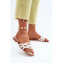 Dámské sandály z ekokože na ploché podrážce bílé Moldela