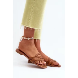 Dámské sandály z ekokože na ploché podrážce hnědé Moldela