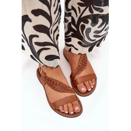 Dámské sandály z přírodní kůže na plochém podpatku Zazoo 3564 Camel
