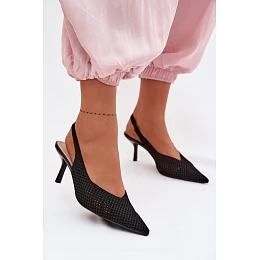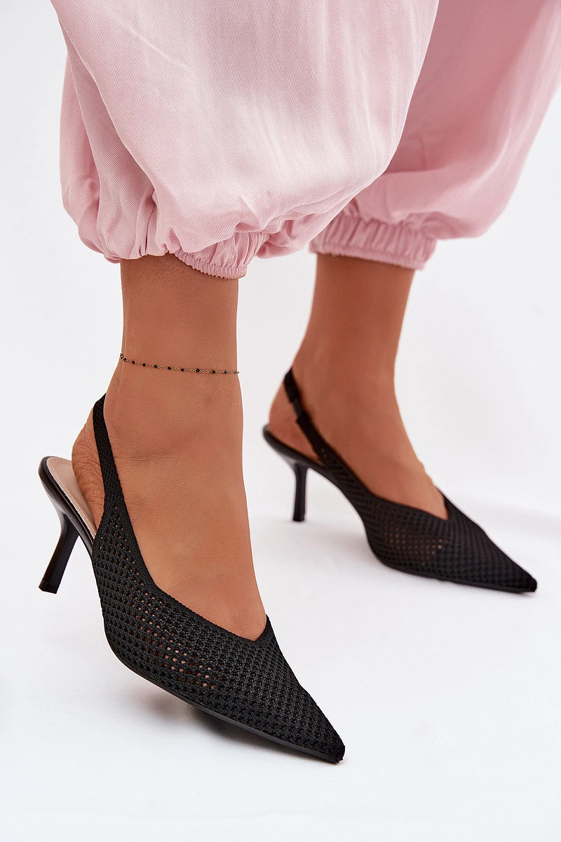 Dámské sandály z síťovaného materiálu na jehlovém podpatku Černé Emiliana