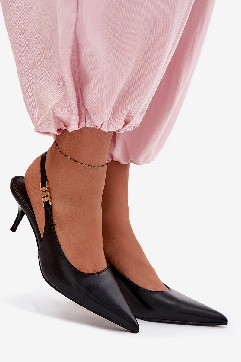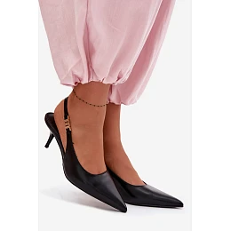 Elegantní dámské sandály vyrobené z napodobeniny kůže jsou výjimečnou volbou pro ženy, které ocení styl a ženský vzhled. Skvěle se hodí na speciální příležitosti, večerní vycházky a letní oslavy. Model má špičaté nosy, které opticky zeštíhlují nohu. Jemná vysoká podrážka podtrhuje siluetu, dodává jí lehkost a ženský půvab. Jemný zlatý detail na pásku je módní akcent, který přitahuje pozornost a dodává celkovému vzhledu elegantní dojem. Ideální spojení elegance, ženskosti a moderního stylu. Při výběru velikosti se řiďte tabulkou velikostí.