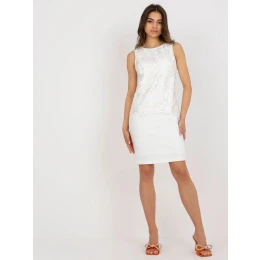 Koktejlové šaty v barvě ecru s kulatým výstřihem.
