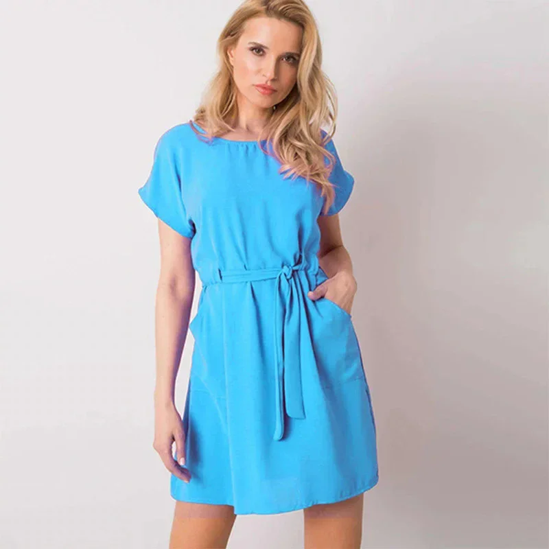 Dámské sportovní šaty netopýří střih s kapsami na zavazování květované modré - Bílá / S - Numoco
