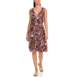 Krásné dámské šaty s potiskem palmových listů v hnědo- bílé kombinaci jsou symbolem kvality, krásy a jednoduchosti. Stylové šaty v délce pod kolena poskytnou komfort po celý den nošení. Jsou vyrobené z vysoce kvalitního materiálu a navržené podle nejnovějších trendů.