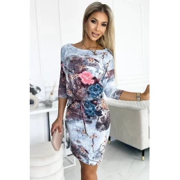 Sportovní šaty 13-155 Numoco - kulatý výstřih - tříčtvrteční rukávy - šaty mají volnější střih - v pase je v tunýlku vložena širší gumička a šňůrka se stříbrnými korálky