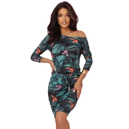Dámské šaty 13-166 NUMOCO - zelená barva - tříčtvrteční rukávy - šaty mají volnější střih - v pase je v tunýlku vložena širší gumička a šňůrka se stříbrnými korálky - délka nad kolena (v závislosti na výšce postavy)