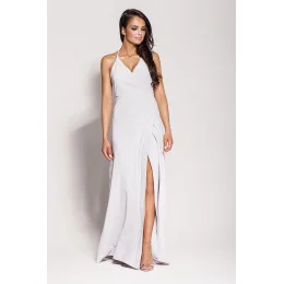 Společenské a plesové šaty krajkové dlouhé luxusní značkové CHARM'S Paris šedé - Šedá / XS - CHARM'S Paris