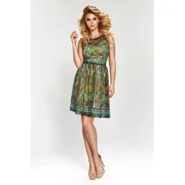 Dlouhé dámské šaty se španělským výstřihem a vzorem zelených listů a zlatých řetízků 194-4 - Numoco