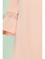 Dámské šaty 190-1 MARGARET NUMOCO - pudrově růžová barva - z vysoce kvalitní tkaniny s krajkou - s kulatým výstřihem - široké rukávy s krajkovými vložkami - velmi pohodlné