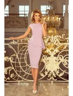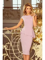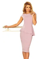 Dámské šaty 190-1 MARGARET NUMOCO - pudrově růžová barva - z vysoce kvalitní tkaniny s krajkou - s kulatým výstřihem - široké rukávy s krajkovými vložkami - velmi pohodlné